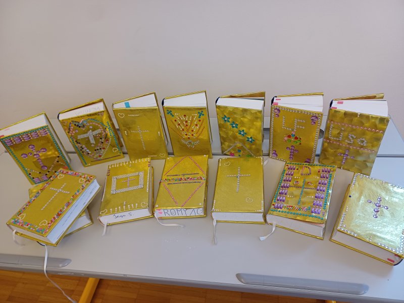 Unter diesem Motto haben die Schülerinnen und Schüler ihre Schulbibeln in wertvolle Unikate verwandelt. Mit viel Kreativität und Liebe zum Detail entstanden kleine Kunstwerke, die zeigen: Die Bibel ist nicht nur ein Buch, sondern ein Schatz, der unser Leben bereichert.