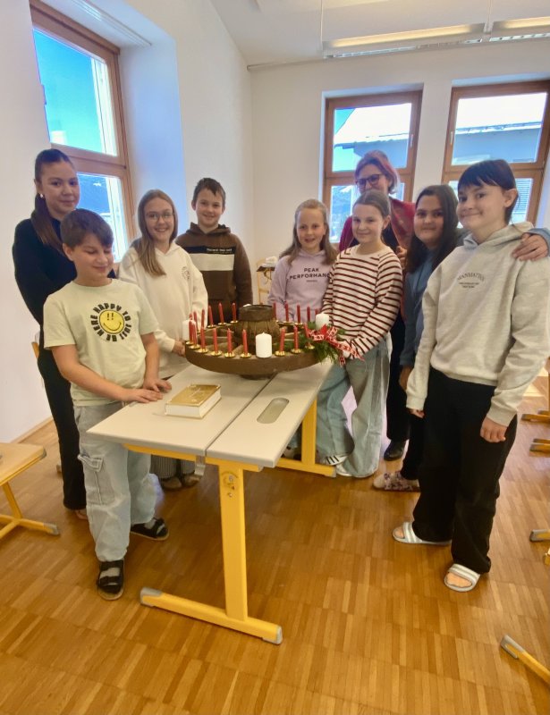 Schüler:innen des evangelischen Religionsunterrichts und Irmgard Vorderegger